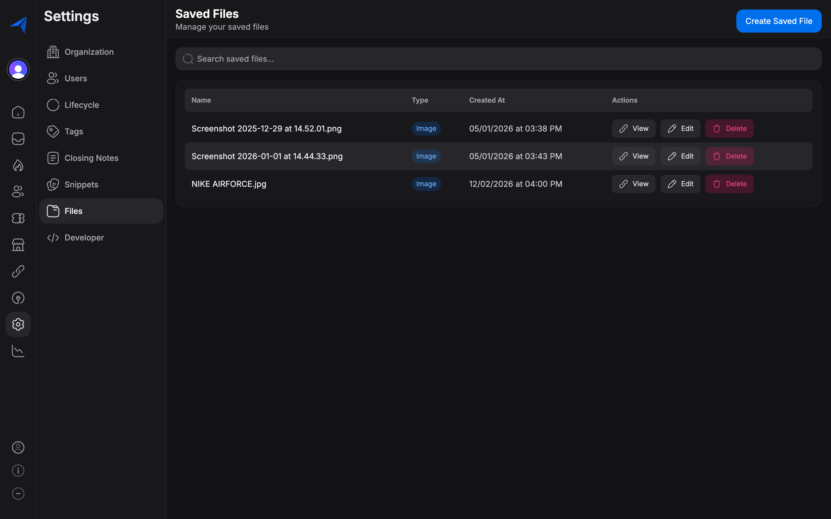 The File Management section serves as a centralized library for all files and media assets in your Replyn organization. Upload images, documents, and other files here to use them across conversations, message templates, and broadcast campaigns.